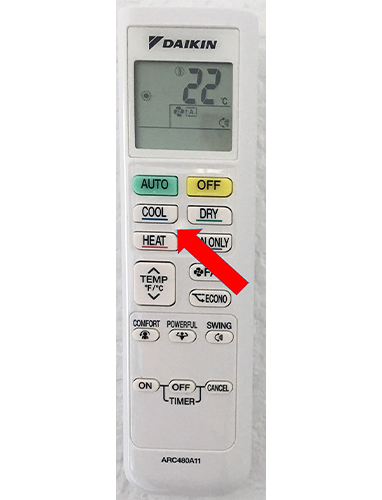 Aircondition i stue/soveværelse – kulde/varme reguleres med fjernbetjening.